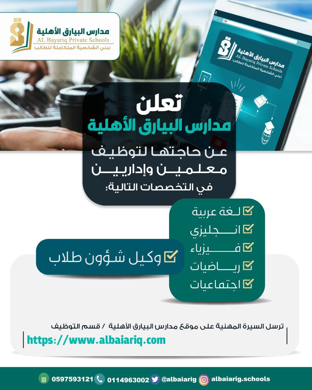 أعلنت اليوم مدارس البيارق الأهلية بمدينة الرياض توفر وظائف تعليمية وإدارية (رجال / نساء) للعام الدراسي الحالي 1444هـ في عدة تخصصات، وبالاسفل جميع تفاصيل الوظائف :